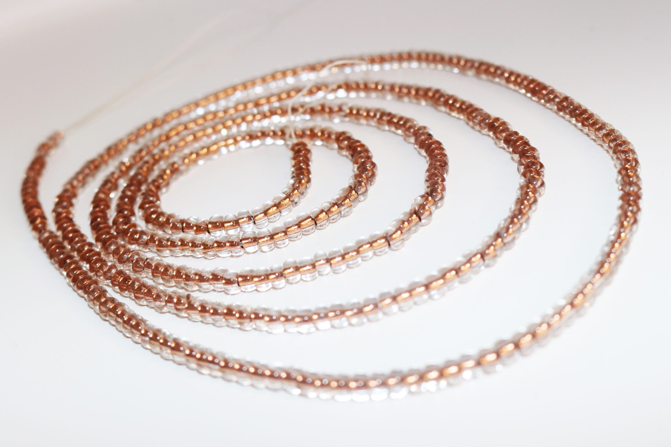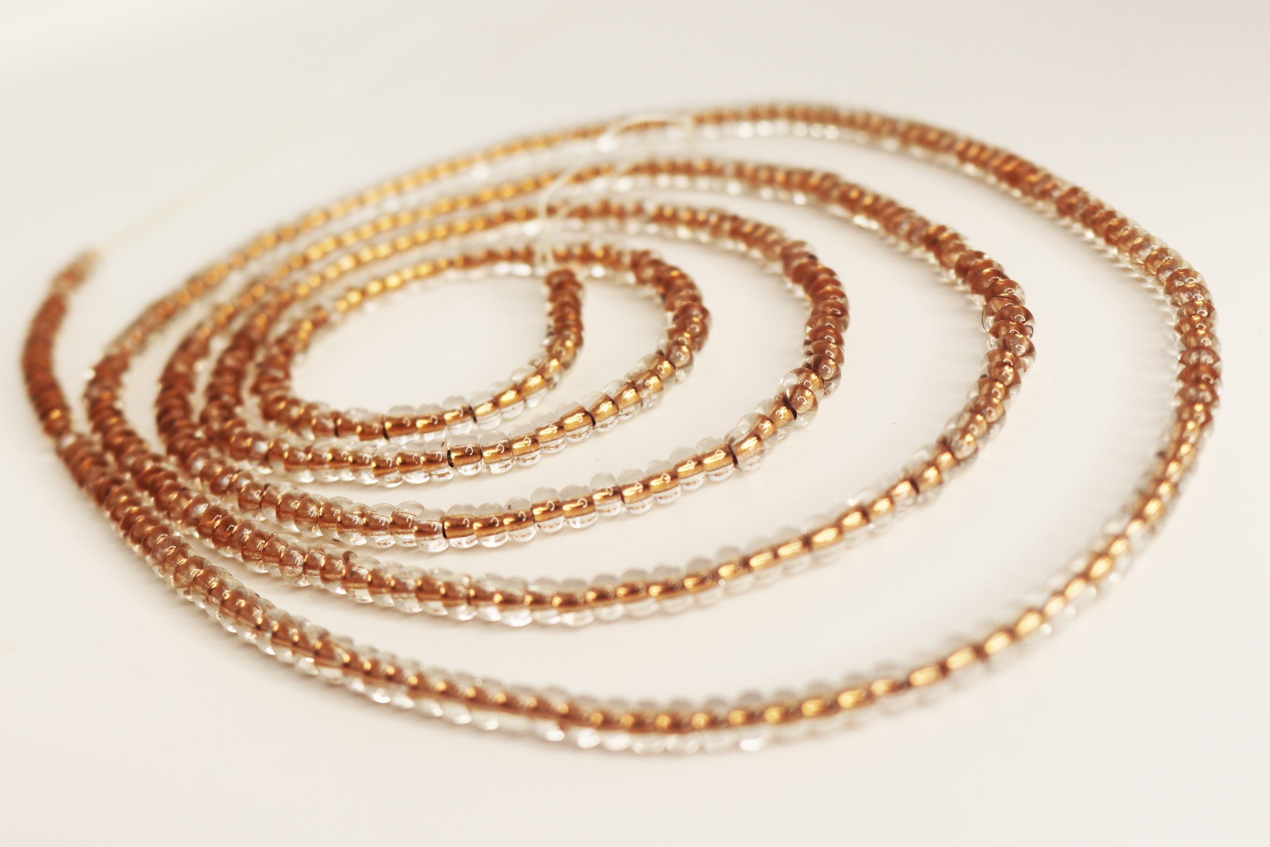 Her Season is a waist bead strand made with copper-lined glass beads to carry the energy of warmth, self-worth, and quiet confidence.